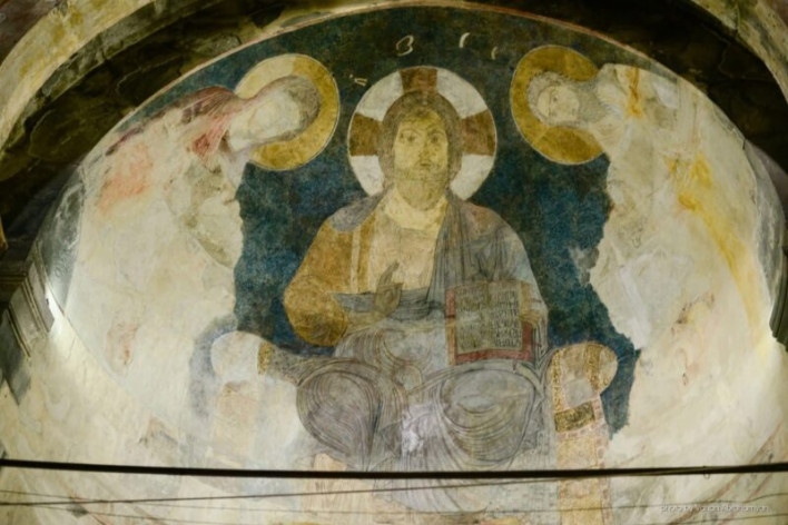 Քրիստոսը ներկայացված է որպես մարդկության Փրկիչ՝ զարդարված գահին նստած։ Նրա աջ ձեռքը բարձրացված է օրհնության համար, իսկ ձախ ձեռքում պահում է բաց Ավետարան։ Ավետարանում պահպանվել են գրություններ, որոնք հետաքրքիր առանձնահատկություն ունեն․ դրանք երկլեզու են՝ աջ էջում հայերեն, ձախում՝ վրացերեն։