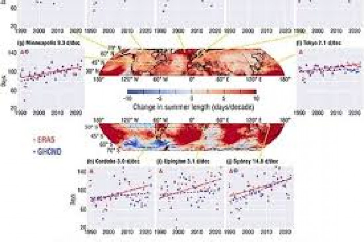 1990 թվականից ի վեր ամառը տասնամյակում միջինում երկարել է 5-7 օրով, և 2020-ականների կեսերին ամառային պայմանները տևում են մոտավորապես 30 օրով ավելի երկար, քան 1960-ականներին: Սա գրեթե երկու անգամ ավելի արագ է, քան նախկինում գրանցված 4 օր տասնամյակում: Այս միտումը տարածվում է ոչ միայն ցամաքի, այլև ափամերձ գոտիների և օվկիանոսների վրա, որոշ քաղաքներում, ինչպիսիք են Սիդնեյը և Մինեապոլիսը, ամառները տարեկան ավելի քան մեկ օրով երկարում են: