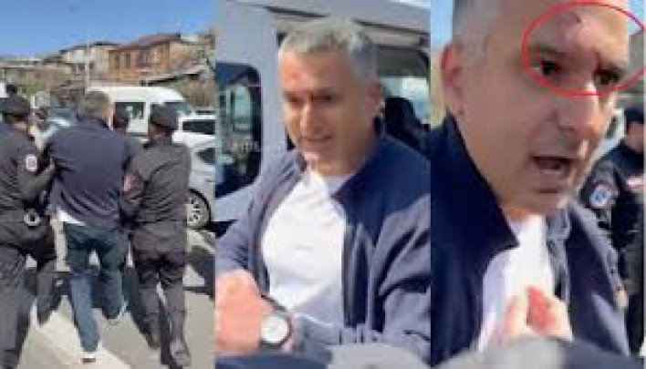 Կադրերում երևում է, որ նա վնասվածքներ է ստացել, ճակատից արյուն է հոսում։