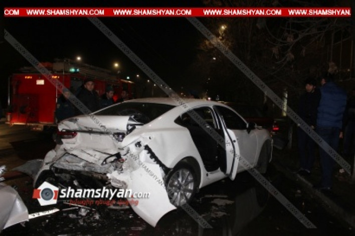 Խոշոր ու շղթայական ավտովթար-հրդեհ Երևանում. բախվել են Toyota-ն, Mazda-ն, Opel-ն ու Mercedes-ը, ինչի հետևանքով Toyota-ում հրդեհ է բռնկվել. ՖՈՏՈՌԵՊՈՐՏԱԺ