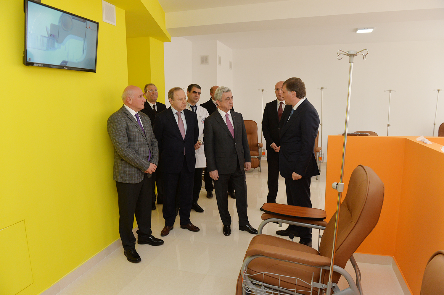 Նախագահ Սերժ Սարգսյանն այսօր` քաղցկեղի դեմ պայքարի միջազգային օրվա նախօրեին, այցելել է առողջապահության նախարարության Վ.Ա. Ֆանարջյանի անվան ուռուցքաբանության ազգային կենտրոն: Հանրապետության Նախագահը շրջայց է կատարել ընդհանուր և մանկական քիմիաթերապիայի հիմնանորոգված բաժանմունքում, ծանոթացել կատարված աշխատանքներին և առողջապահական որակյալ ծառայություններ մատուցելու նպատակով ստեղծված պայմաններին: