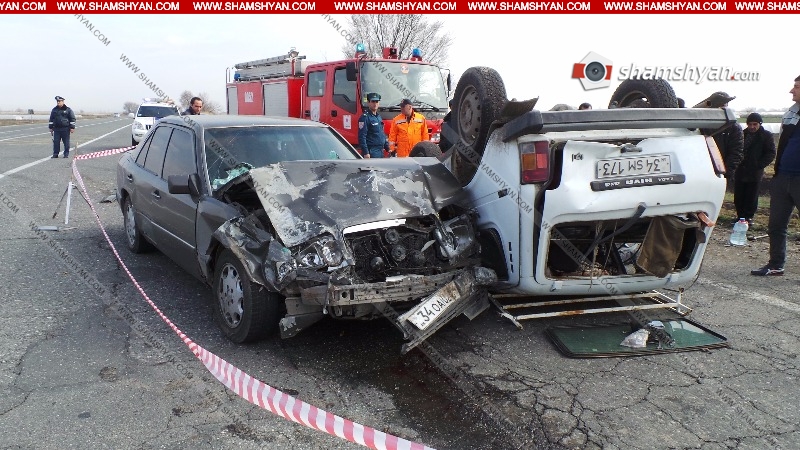 Խոշոր ավտովթար Արմավիրի մարզում. բախվել են 28-ամյա վարորդի Mercedes-ն ու 58-ամյա վարորդի Нива-ն. վերջինը գլխիվայր շրջվել է. ՖՈՏՈՌԵՊՈՐՏԱԺ