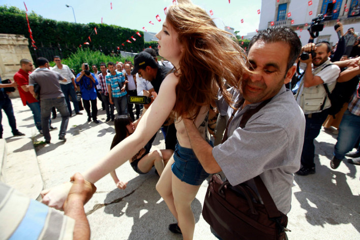 Մարտի 4-ին Իտալիայումխորհրդարանական ընտրություններ են անցկացվում: 82-ամյա Սիլվիո Բեռլուսկոնիի քվեարկության ժամանակ FEMEN-ի կիսամերկ ակտիվիստուհին բարձրացել է սեղանի վրա՝ բղավելով․ «Ժամանակը սպառվել է, Բեռլուսկոնի՛։ Դու չափից ավելի ես նստել»։