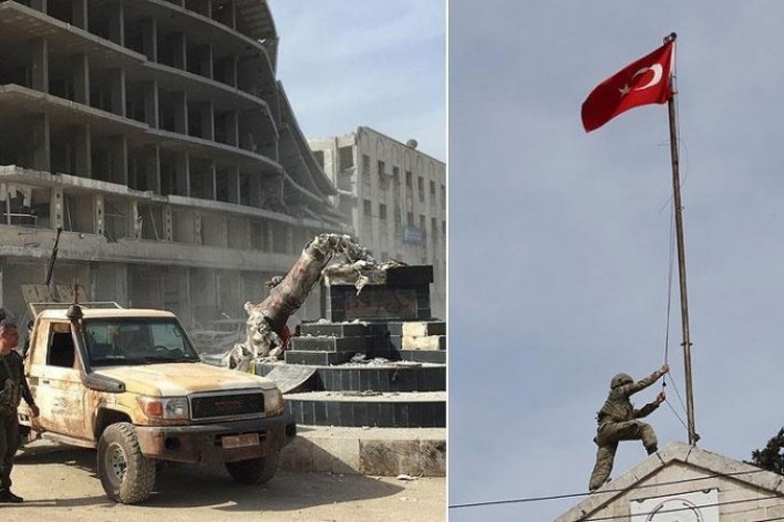 Թուրք զինվորականները, Աֆրին քաղաքի գրավումից հետո, քաղաքապետարանի շենքի վրա Թուրքիայի դրոշն են կանգնեցրել։