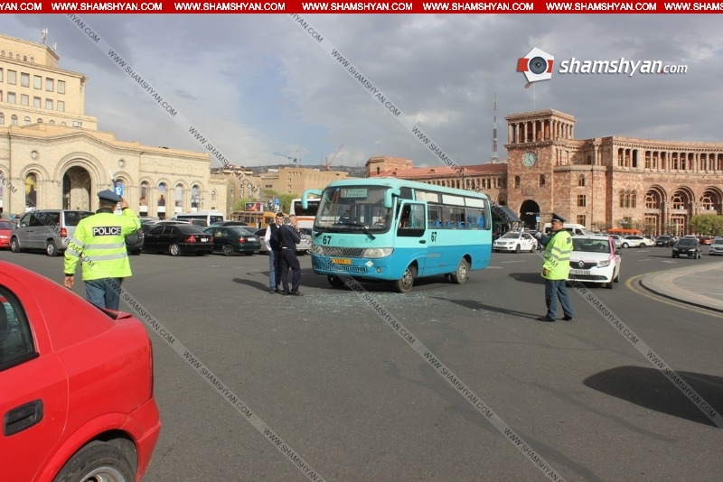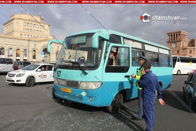 Երեկ՝ մարտի 27-ին, ավտովթար է տեղի ունեցել Երևանում: Ժամը 16:40-ի սահմաններում Հանրապետության հրապարակում բախվել են թիվ 67 երթուղին սպասարկող 4259 Տ համարանիշի ավտոբուսը և Opel մակնիշի 34 CL 612 համարանիշի ավտոմեքենան: Ինչպես հայտնում է ֆոտոլրագրող Գագիկ Շամշյանը, վթարի հետևանքով, ըստ նախնական տեղեկությունների, բարեբախտաբար զոհեր և վիրավորներ չկան: Դեպքի վայր են ժամանել ճանապարհային ոստիկանության 1-ին սպայական գումարտակի 7-րդ դասակի աշխատակիցները: Ժամանել են նաև ապահովագրական ընկերությունների ներկայացուցիչները: