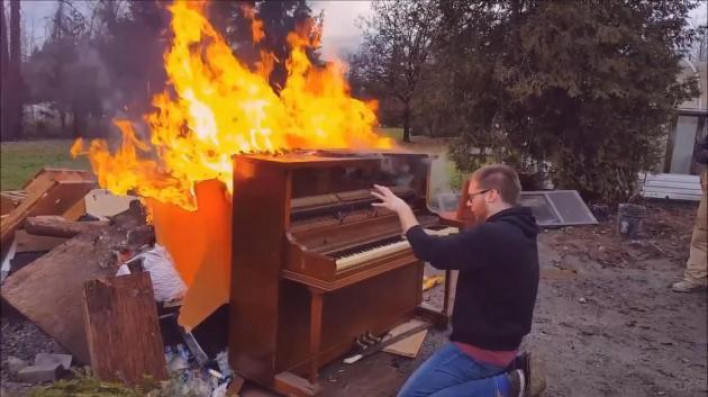 Vesti-ի փոխանցմամբ, իր դարն ապրած երաժշտական գործիքը, որը երկար ժամանակ չէր օգտագործվել, գոյության վերջին րոպեները համերգային մթնոլորտում է անցկացրել: Դաշնամուրն այրվել է, իսկ երաժիշտը՝ երկարացնելով ձեռքերը նվագել է, հաղորդում էն: