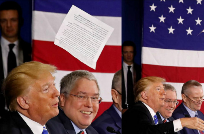 Միացյալ Նահանգների նախագահ Դոնալդ Թրամփն Արևմտյան Վիրջինիայում հարկային բարեփոխումների թեմայով հրավիրված կլոր սեղանի ժամանակ ցուցադրաբար դեն է նետել իր ելույթի տեքստով թերթիկը: