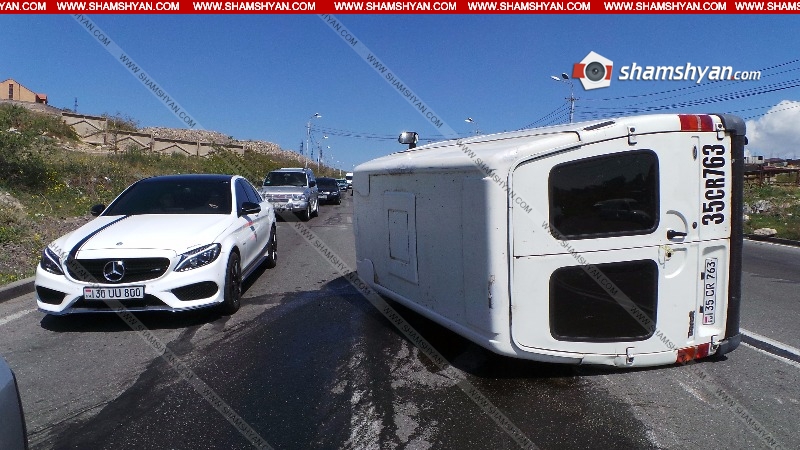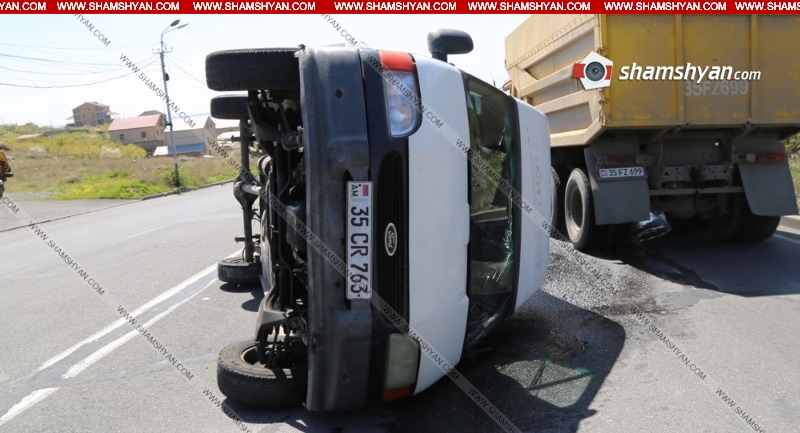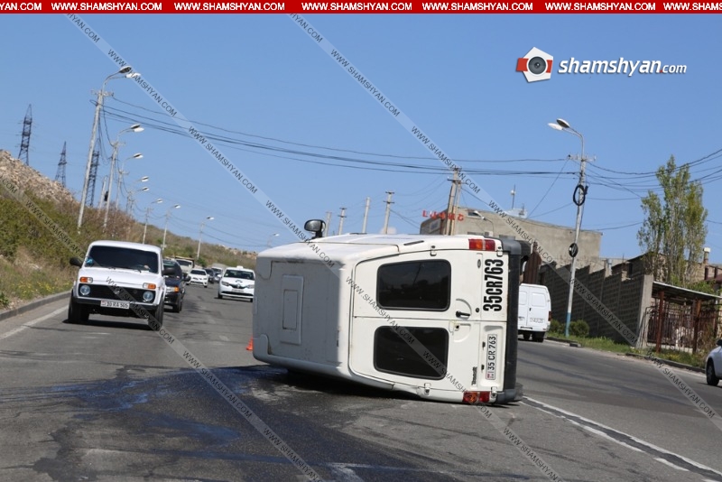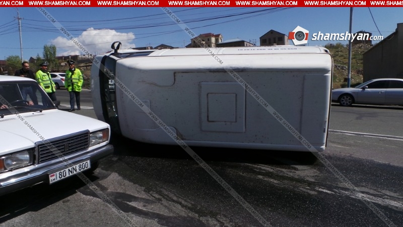 Երևանում՝ Դավիթ Բեկի պողոտայի արագաչափի մոտ, բախվել են Ford Transit-ները, որից մեկը կողաշրջվել է. ՖՈՏՈՌԵՊՈՐՏԱԺ
