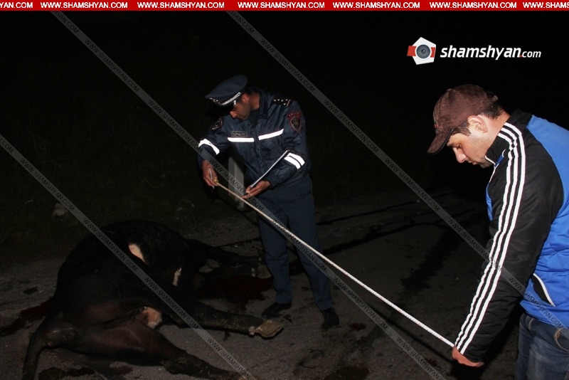 Այսօր՝ ապրիլի 9-ին, արտակարգ դեպք է տեղի ունեցել Կոտայքի մարզում: Ժամը 02:00-ի սահմաններում Երևան-Սևան ավտոճանապարհի 13-րդ կմ հատվածում 70-ամյա Պայքար Թումանյանը իր վարած ВАЗ 2106 մակնիշի 42 OO 559 համարանիշի, 26-ամյա Նարեկ Սախոյանը՝ իր վարած Mercedes մակնիշի 12 SV 002 համարանիշի և 30-ամյա Ուսուբ Ասատրյանը՝ իր վարած Opel Zafira մակնիշի 35 MX 893 համարանիշի ավտոմեքենաներով բախվել են ճանապարհի երթևեկելի հատվածում հայտնված կովերի, որոնցից մեկը սատկել է, մյուսը՝ ստացել վնասվածքներ: Ինչպես հայտնում է ֆոտոլրագրող Գագիկ Շամշյանը, բախման հետևանքով «06»-ի մեկ ուղևոր տեղափոխվել է Աբովյանի բժշկական կենտրոն: Դեպքի վայր են ժամանել ճանապարհային ոստիկանության 2-րդ սպայական գումարտակի 3-րդ վաշտի 1-ին դասակի աշխատակիցները՝ վաշտի հրամանատար Արթուր Պետրոսյանի և դասակի հրամանատար Հրանտ Գալստյանի գլխավորությամբ: Դեպքի մասին ՃՈ 1-77 օպերատիվ կառավարման կենտրոնի պատասխանատու հերթապահ Գեղամ Մարգարյանը տեղեկությունը փոխանցել է ոստիկանության Աբովյանի բաժին, որտեղից ժամանել է օպերատիվ խումբը՝ համայնքային ոստիկանության ավագ տեսուչի գլխավորությամբ։ Ժամանել են նաև ապահովագրական ընկերությունների ներկայացուցիչները: Փաստի առթիվ ՃՈ 2-րդ սպայական գումարտակի 3-րդ վաշտի ավագ հետաքննիչ Ավետիք Ավետիսյանի կողմից նյութեր են նախապատրաստվում: Ոստիկանությունը պարզում է վիրավորի ինքնությունը: Ծանուցում. Ենթադրյալ հանցանքի մեջ կասկածվողը կամ մեղադրվողը համարվում է անմեղ, քանի դեռ նրա մեղավորությունն ապացուցված չէ ՀՀ քրեական դատավարության օրենսգրքով սահմանված կարգով` դատարանի` օրինական ուժի մեջ մտած դատավճռով: Լուսանկարները՝ Սմբատ Պետրոսյանի