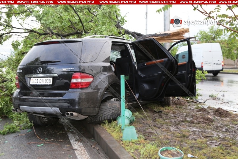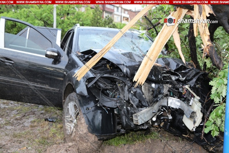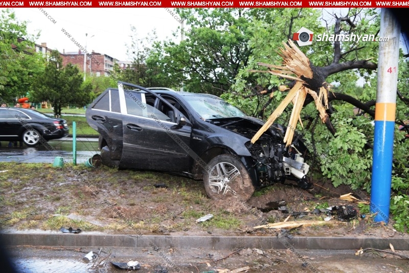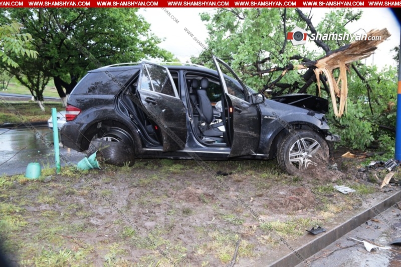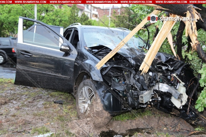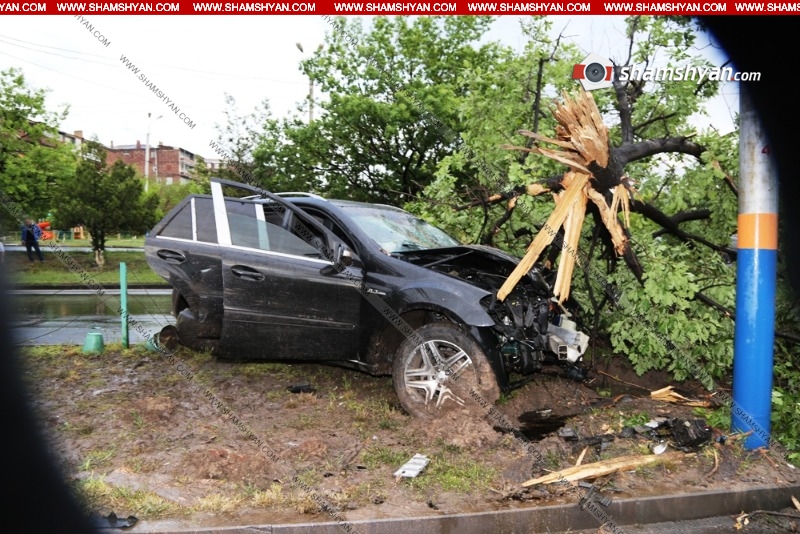 Խոշոր ավտովթար Երևանում. Դավիթ Բեկի փողոցում Mercedes ML-ը բախվել է հաստաբուն ծառին. ծառը կոտրվել է. կա վիրավոր. ՖՈՏՈՌԵՊՈՐՏԱԺ