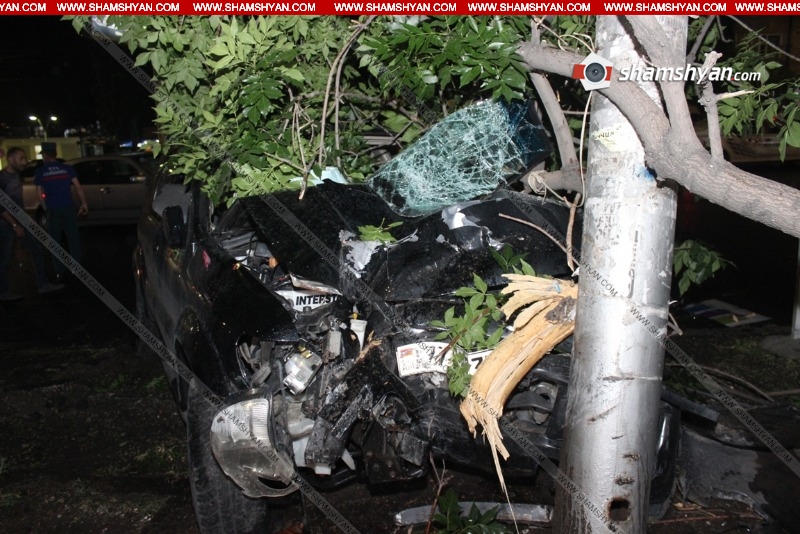 «Երևան մոլ»-ի դիմաց Infiniti-ն արմատախիլ է արել ծառը և բախվել արտաքին լուսավորության սյանն ու կանգառին. կա վիրավոր. ՖՈՏՈՌԵՊՈՐՏԱԺ