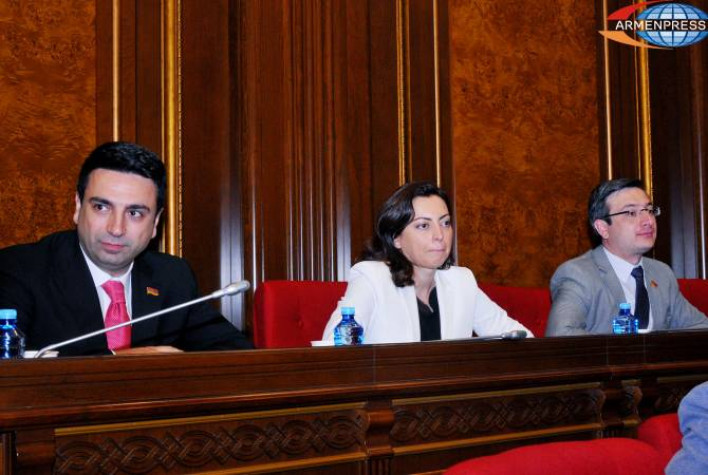 Հարցին, որ կան լուրեր, թե Էդմոն Մարուքյանն է լինելու խմբակցության ղեկավարը, Սիմոնյանը պատասխանեց. «Ինձ համար նախընտրելի թեկնածուն Լենա Նազարյանն է»: