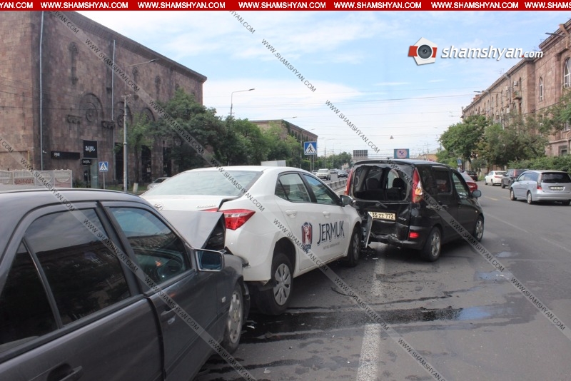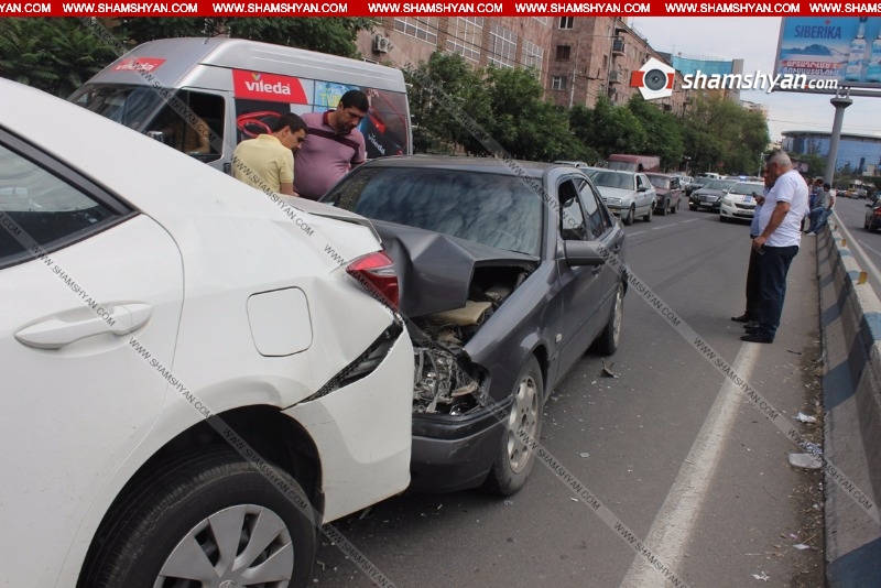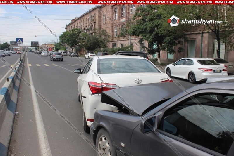 Այսօր՝ հունիսի 2-ին, շղթայական ավտովթար է տեղի ունեցել Երևանում: Ժամը 10:00-ի սահմաններում Արշակունյաց պողոտայում՝ ՀՀ կառավարությանն առընթեր անշարժ գույքի կադաստրի պետական կոմիտեի դիմաց, բախվել են Mercedes մակնիշի 34 AA 555 համարանիշի, «Ջերմուկ Գրուպ» ընկերության Toyota Camry մակնիշի 923 AC 61 համարանիշի ու Toyota մակնիշի 35 ZZ 772 համարանիշի ավտոմեքենաները: Ինչպես հայտնում է ֆոտոլրագրող Գագիկ Շամշյանը, վթարի հետևանքով, բարեբախտաբար, զոհեր և վիրավորներ չկան: Դեպքի վայր են ժամանել ճանապարհային ոստիկանության 1-ին սպայական գումարտակի ծառայողները: Վթարի մասին Երևանի ՃՈ օպերատիվ կառավարման կենտրոնի պատասխանատու հերթապահ Միքայել Աղաբեկյանը տեղեկությունը փոխանցել է ճանապարհային ոստիկանության ճանապարհատրանսպորտային պատահարների գործերով հետաքննության և վարչական վարույթի իրականացման բաժանմունք, որտեղից ժամանել է հետաքննչական խումբը՝ բաժնի պետ Ալբերտ Նազարյանի և ավագ հետաքննիչ Հովհաննես Սարգսյանի գլխավորությամբ, ում կողմից փաստի առթիվ նյութեր են նախապատրաստվում: Ոստիկանությունն ու հետաքննչական բաժանմունքը պարզում են վարորդների ինքնությունը: Ծանուցում. Ենթադրյալ հանցանքի մեջ կասկածվողը կամ մեղադրվողը համարվում է անմեղ, քանի դեռ նրա մեղավորությունն ապացուցված չէ ՀՀ քրեական դատավարության օրենսգրքով սահմանված կարգով` դատարանի` օրինական ուժի մեջ մտած դատավճռով: Լուսանկարները և տեսանյութը՝ Սմբատ Պետրոսյանի