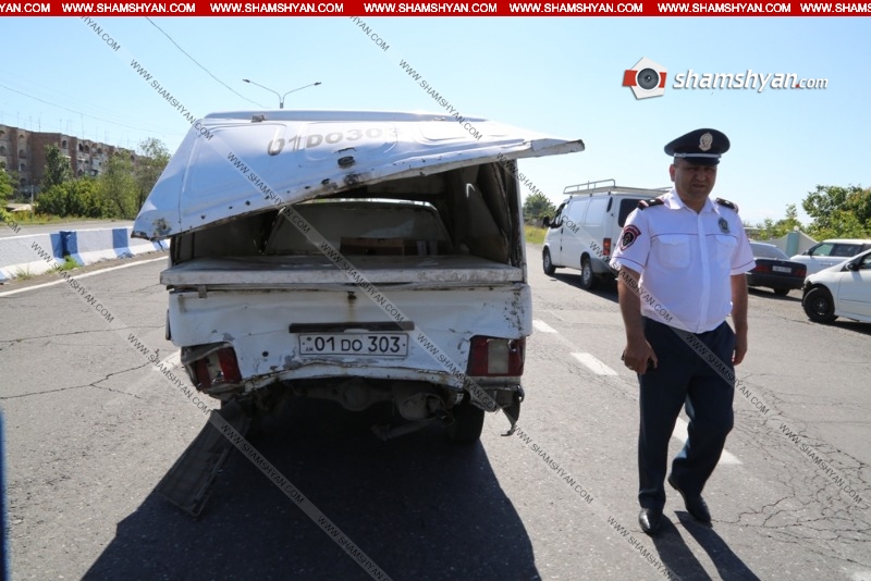 Այսօր, հունիսի 6-ին ավտովթար է տեղի ունեցել Արմավիրի մարզում։ Ժամը 09։00-ի սահմաններում Երևան-Արմավիր ավտոճանապարհի Էջմիածին քաղաքի գլխավոր մուտքի մոտ բախվել են Mercedes մակնիշի 34 ՏD 136 համարնիշի և IZH 2717 մակնիշի 01 DՕ 303 համարանիշի ավտոմեքենաները։ Ինչպես դեպքի վայրից հայտնում է ֆոտոլրագրող Գագիկ Շամշյանը, վթարի հետևանքով երկու հոգի մարմնական վնասվածքներով տեղափոխվել են Վաղարշապատի բժշկական կենտրոն։ Վիրավորներին առաջինը օգնության են հասել վթարի հարևանությամբ գտնվող ավտովերանորոգման կետի աշխատակիցները։ Դեպքի վայր են ժամանել Ճանապարհային ոստիկանության 2-րդ սպայական գումարտակի 1-ին վաշտի 1-ին դասակի ծառայողները վաշտի հրամանատար Տիգրան Գրիգորյանի, դասակի հրամանատար Մառլեն Սարգսյանի գլխավորությամբ։ Փաստի առթիվ նույն վաշտի ավագ հետաքննիչ Գևորգ Եղիազարյանի կողմից նյութեր են նախապատրաստվում։ Վթարի մասին ՃՈ 1-77 օպերատիվ կառավարման կենտրոնի պատասխանատու հերթապահ Գեղամ Մարգարյանը տեղեկությունը փոխանցել է Ոստիկանության Վաղարշապատի բաժին, որտեից ժամանել է օպերատիվ խումբը բաժնի պետ Գևորգ Հակոբյանի գլխավորությամբ։ Ոստիկանությունը պարզում է վարորդների և վիրավորների ինքնությունը։ Լուսանկարները և տեսանյութը՝ Գագիկ Շամշյանի Ծանուցում. Ենթադրյալ հանցանքի մեջ կասկածվողը կամ մեղադրվողը համարվում է անմեղ, քանի դեռ նրա մեղավորությունն ապացուցված չէ ՀՀ քրեական դատավարության օրենսգրքով սահմանված կարգով` դատարանի` օրինական ուժի մեջ մտած դատավճռով: